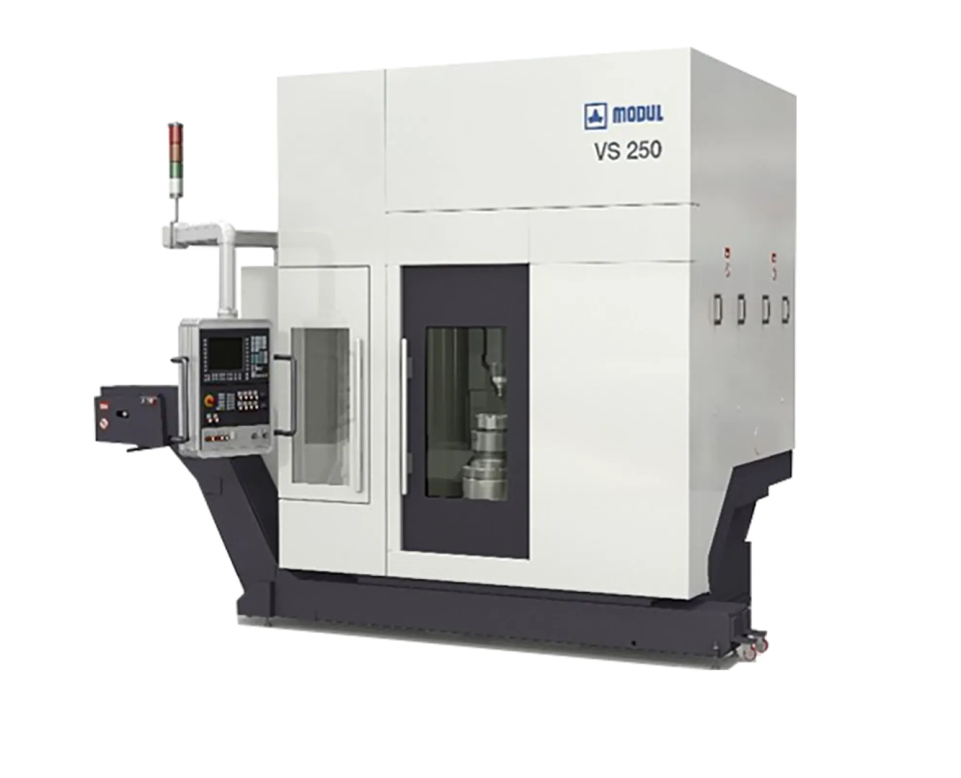 Modul VS 250 skiving machines ensure maximum yield rates in the high performance range from single part and small series production to mass production. These skiving machines can be used to produce high-quality external and internal gears on workpieces up to 250 mm in diameter and gear module 6 by multi-cut machining in large quantities. The skiving machines are suitable for dry and wet machining with oil or emulsion as well as for soft and hard machining.